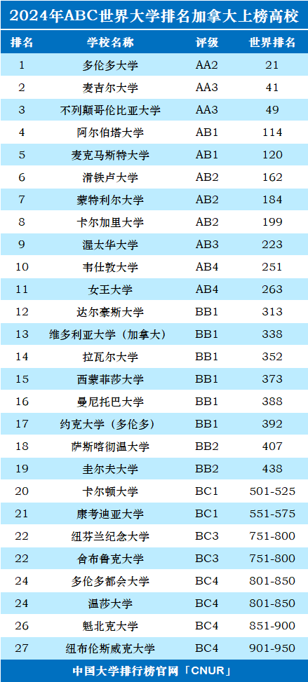 | 4 | 阿尔伯塔大学 | AB1 | 114 |