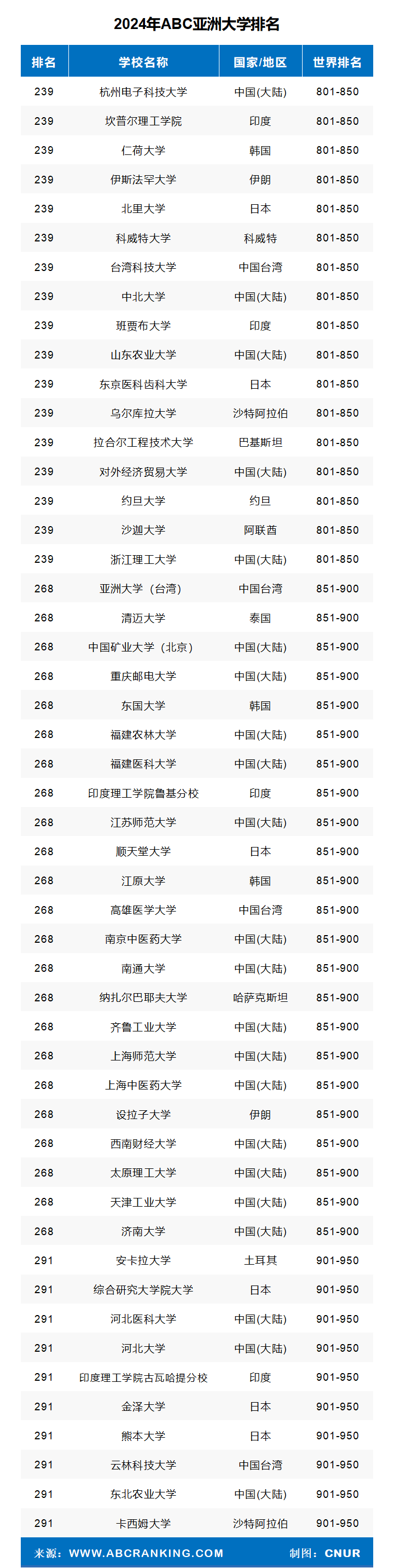 | 239 | 拉合尔工程技术大学 | 巴基斯坦 | 801-850 |