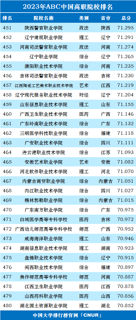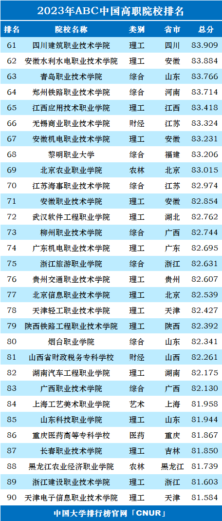 2.2023年ABC中国高职院校排名完整榜单